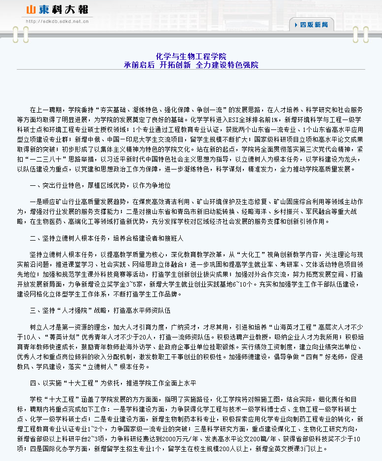 近日,《山东科大报》、学校网站刊载伟德国际1946源于英国发展目标文章,原文如下: