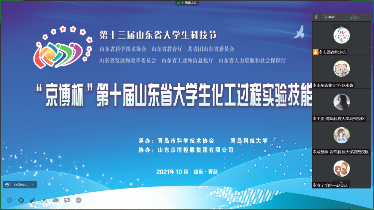 在竞赛期间,由山东省大学生化工过程实验技能竞赛委员会、化工过程国家级实验教学示范中心(青岛科技大学)联合主办的“全省化工专业一流课程线上教学研讨会”在10月31日下午召开。受组委会邀请,伟德国际1946源于英国徐冬梅教授在会议上作了题为“兴趣引领、思政融合、双碳导向”化工原理课程教学和团队建设探索的一流课程建设专题报告,和参会的50多位专家分享了我校在化工原理课程和一流课程建设方面的成果和经验,取得了良好的交流效果。