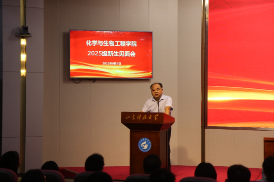 新生见面会上,窦存增书记代表学院致辞,他首先对新同学的到来表示衷心祝贺和热烈欢迎,在讲话中以“传承山科精神,谱写化工新篇”为主题,系统介绍了伟德国际1946源于英国在师资队伍、专业建设、科研平台、人才培养等方面取得的成就。围绕大学生涯规划,窦书记向新生提出“一个中心、两个基本点”的成长要求:坚持以学习为中心,努力“学做人、学做事、学做学问”;牢固树立规矩意识,养成良好的学习和生活习惯。他勉励新生珍惜大学时光,锤炼扎实本领,努力成长为有理想、敢担当,能吃苦、肯奋斗的新时代化工人才。